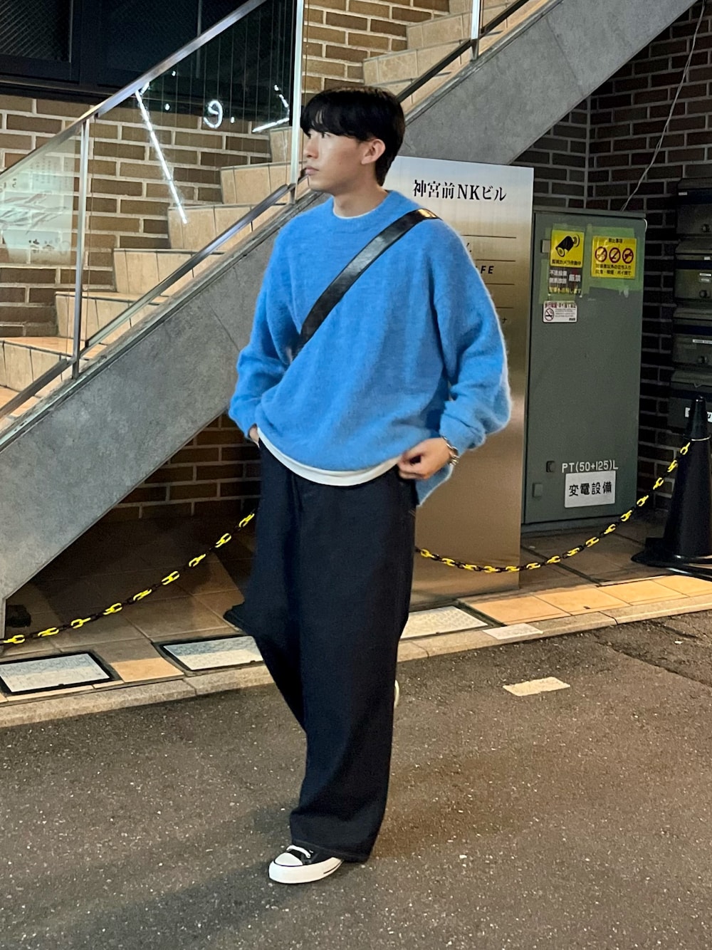 ブルーコーデ プチプラニットにワイドデニム合わせたカジュアルスタイル組みました✌️ すべてユニセックスで着用可能です!