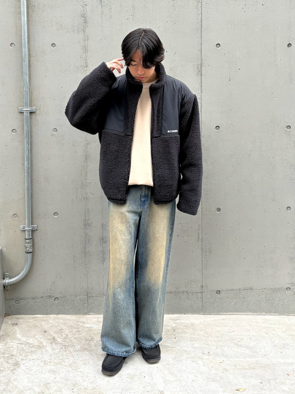 カジュアルスタイル コロンビアのボアジャケットにデニム合わせたカジュアルスタイル🧥 すべてユニセックスで着用可能です!