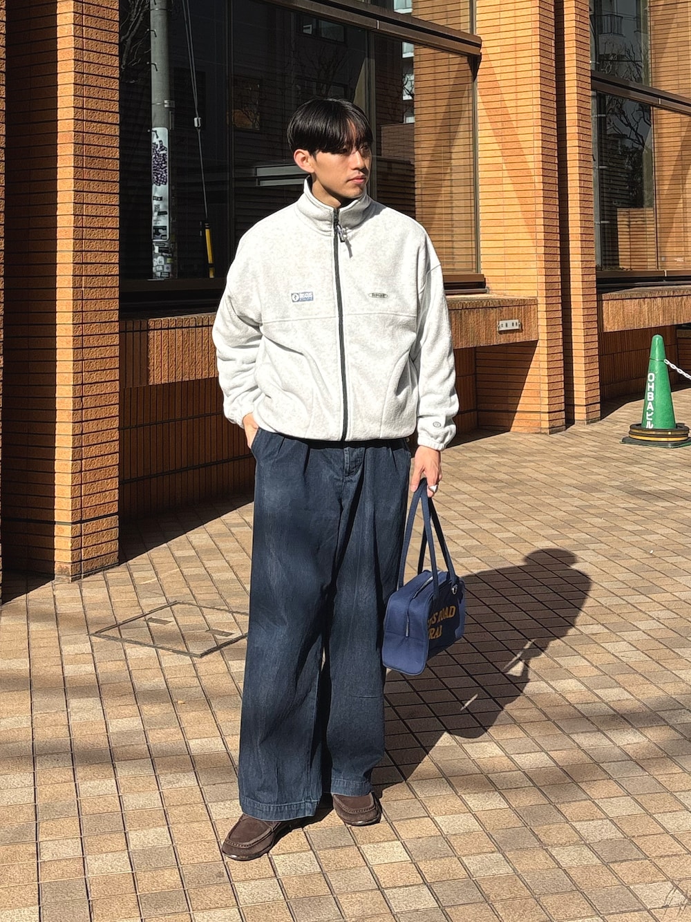 ディスカスのフリースジャケットにワイドデニム合わせた韓国カジュアルスタイル組みました✌️ すべてユニセックスで着用可能です!