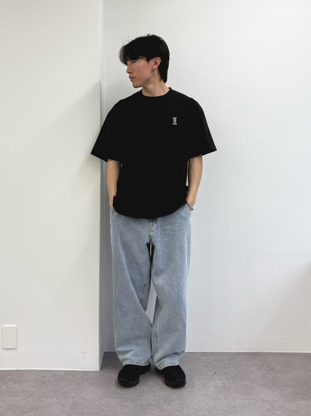 バックプリントが可愛いプリントTにワイドデニム合わせたシンプルカジュアルスタイル組みました✌️ すべてユニセックスで着用可能です‼️ 170cm トップス Mサイズ着用 パンツ Lサイズ着用