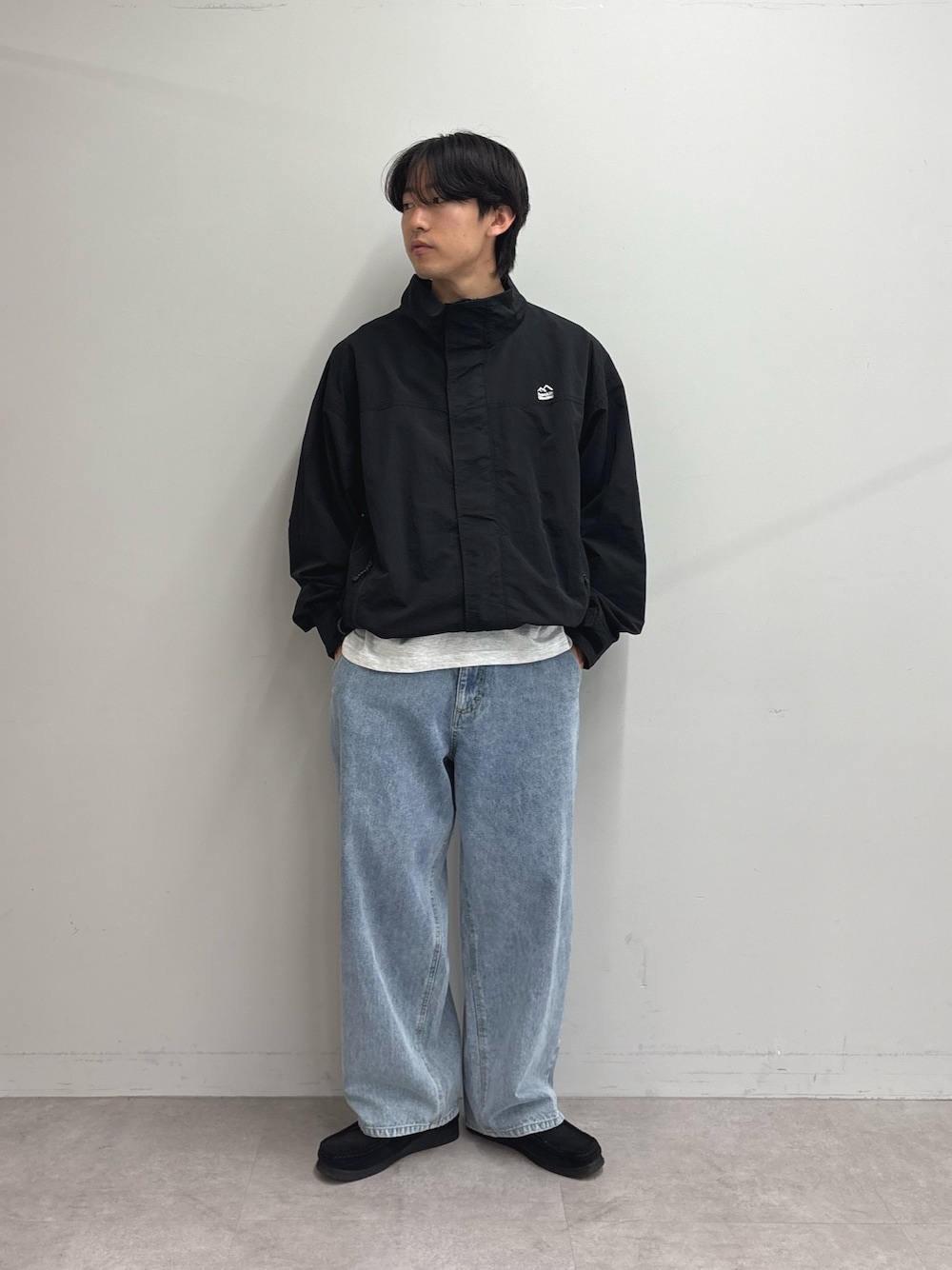 梅雨の時期まで着れるナイロンジャケットにワイドデニム合わせたカジュアルスタイル組みました✌️ すべてユニセックスで着用可能です‼️