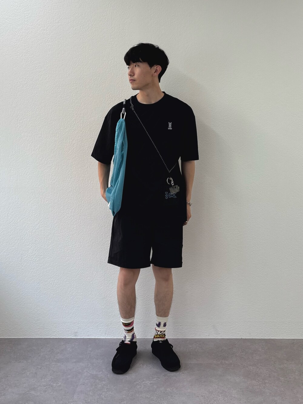 バックプリントが可愛いプリントTにショーツ合わせた夏モノトーンスタイル組みました✌️ すべてユニセックスで着用可能です! 170cm トップス Lサイズ着用 パンツ Mサイズ着用