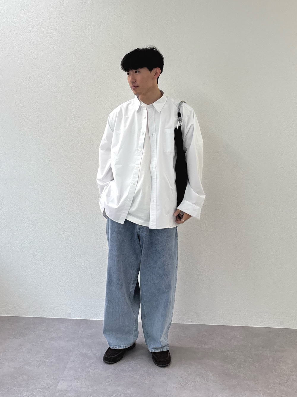 ブロードシャツにワイドデニム合わせたカジュアルスタイル組みました✌️ インナーにプリントTいれてカジュアルめに すべてユニセックスで着用可能です‼️