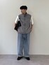 ナイロンベストにワイドデニム合わせたカジュアルスタイル組みました✌️ インナーにプリントTいれてベスト脱いでもアクセントに! すべてユニセックスで着用可能です‼️