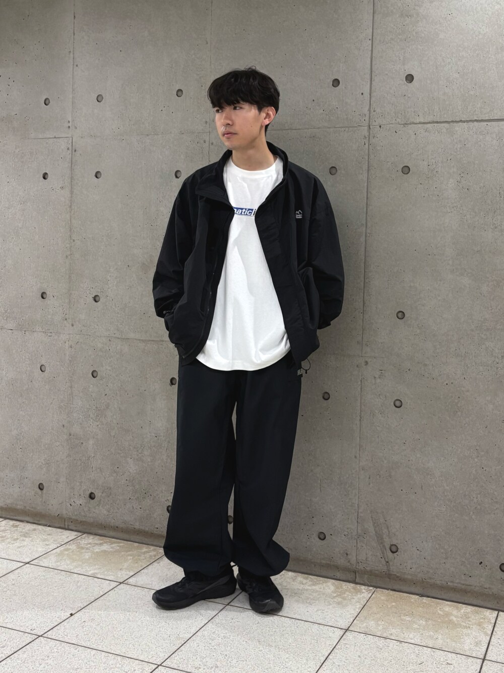 梅雨の時期使えるナイロンジャケット使ったモノトーンコーデ組みました✌️ インナーの白Tもオーバーサイズできれます!