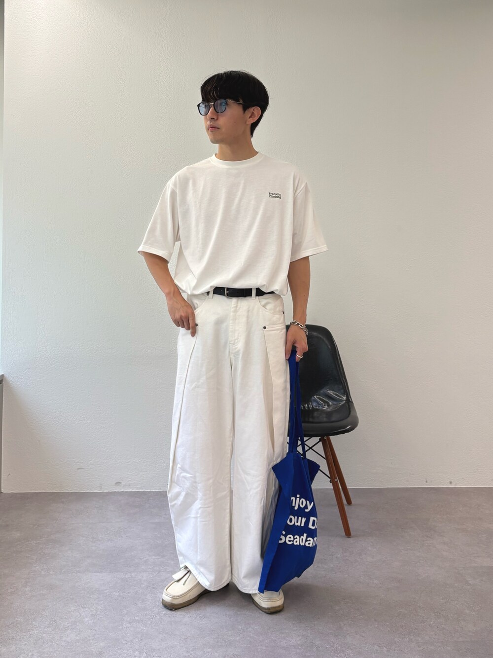 プリントTにタックデニム合わせたホワイトコーデ組みました✌️ すべてユニセックスで着用可能です!