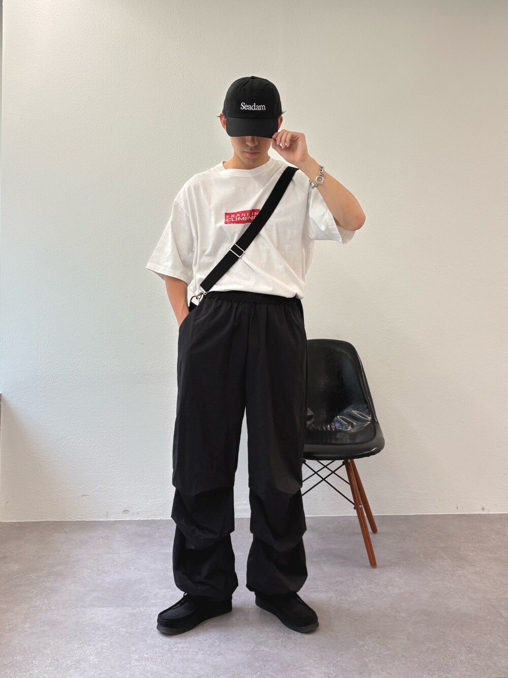 ロゴTにナイロンパンツ合わせたモノトーンスタイル組みました✌️ すべてユニセックスで着用可能です!