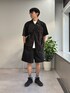 ブラックシャツにバギーショーツ合わせたモノトーンスタイル組みました✌️ すべてユニセックスで着用可能!