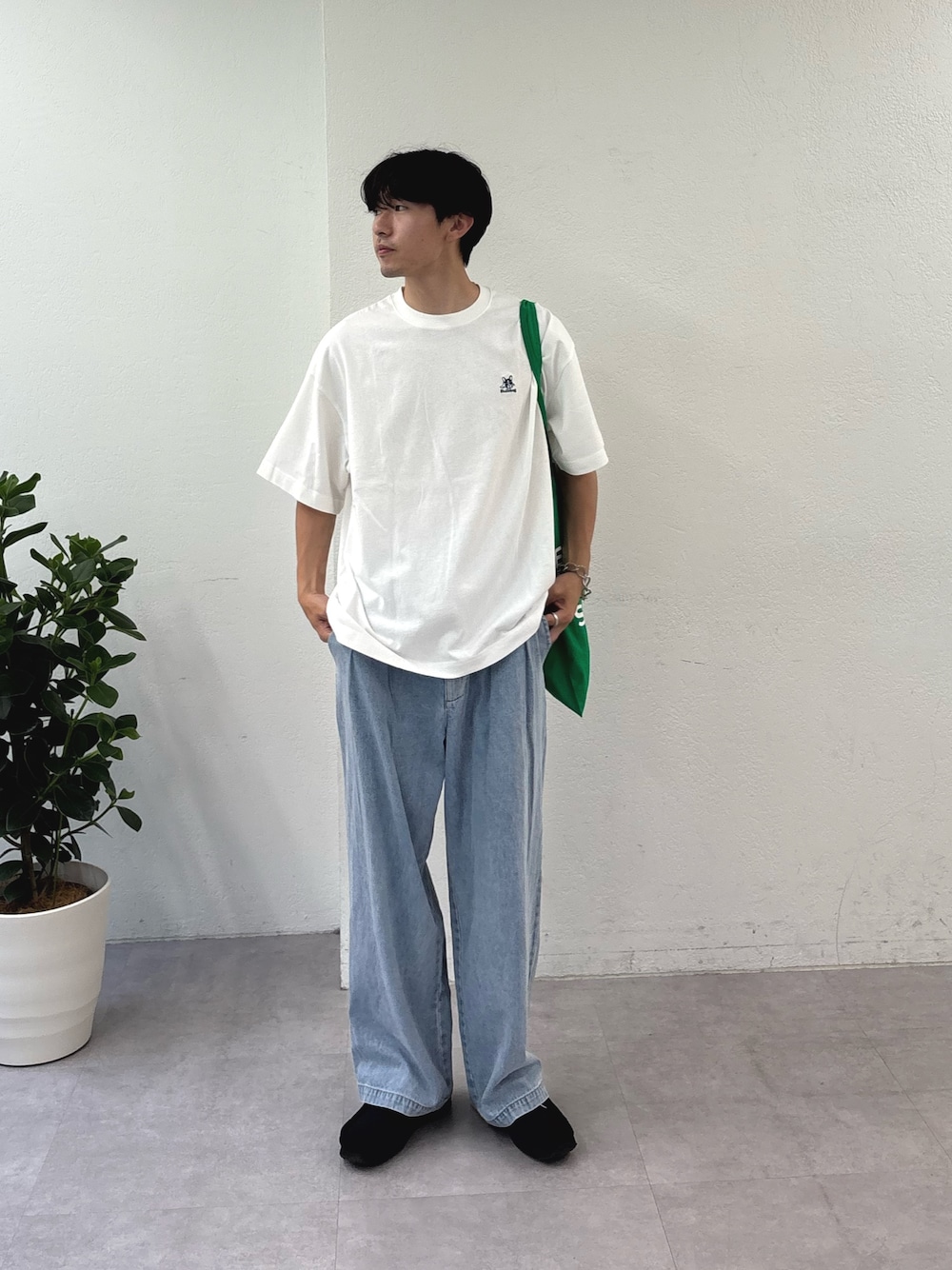 ロゴプリントTにワイドデニム合わせたカジュアルスタイル組みました✌️ すべてユニセックスで着用可能です!