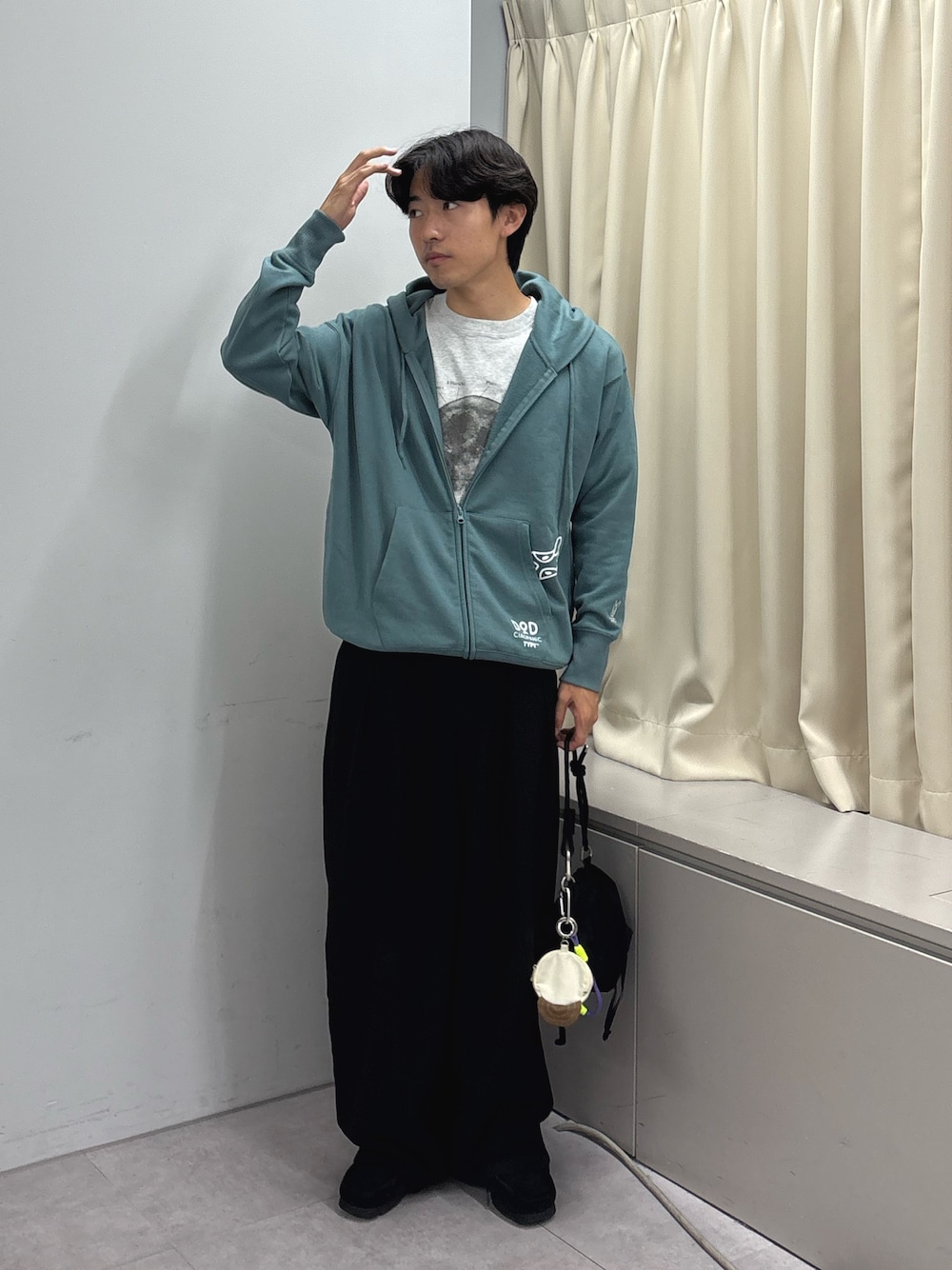 ジップパーカーにスラックス合わせたカジュアルスタイル組みました✌️ すべてユニセックスで着用可能です! 170cm パーカー Mサイズ着用 パンツ Lサイズ着用 Tシャツ Mサイズ着用