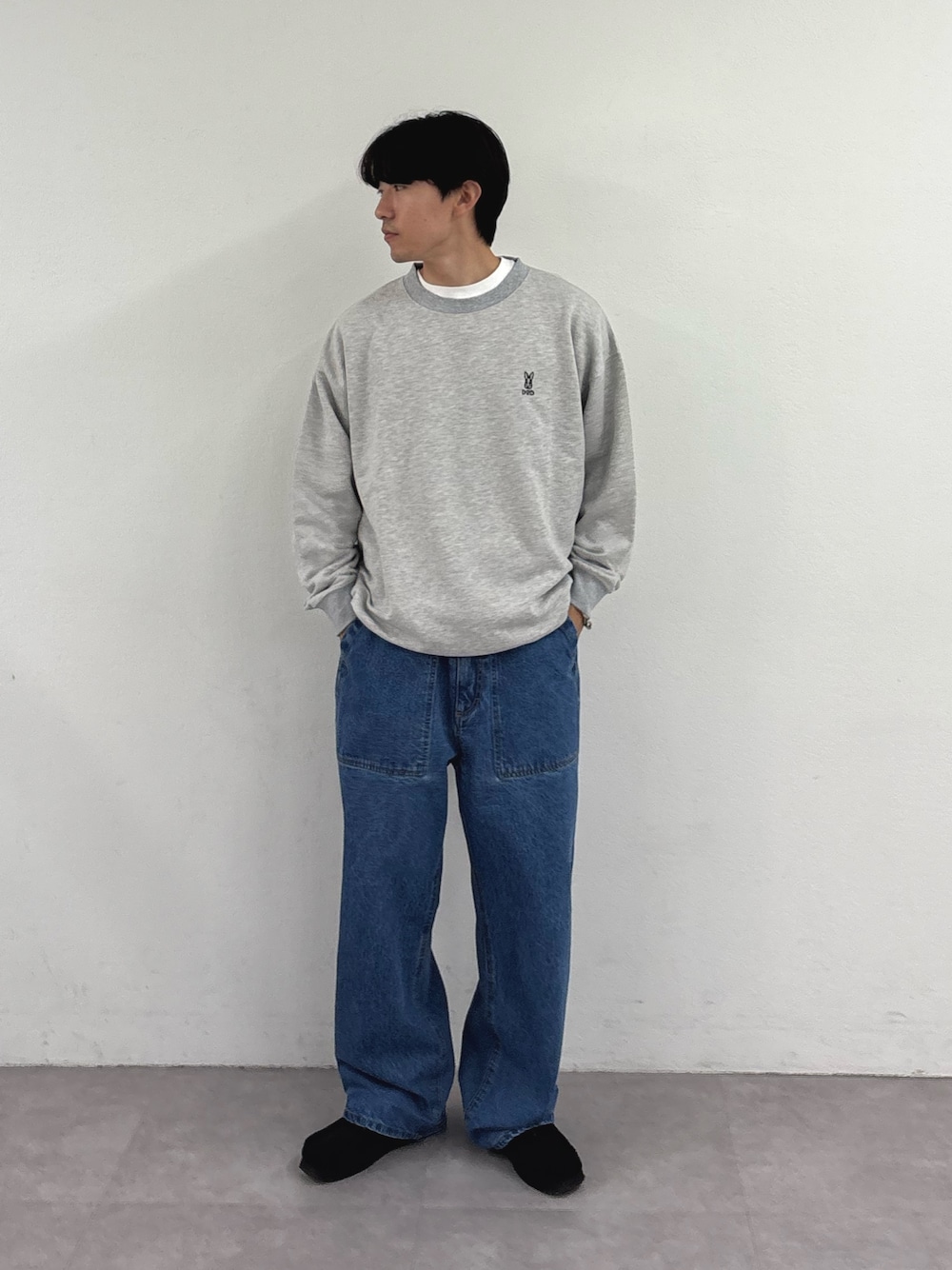 バックプリントが可愛いスウェットにデニムパンツ合わせた王道カジュアルスタイル組みました✌️ すべてユニセックスで着用可能! 170cm トップス Lサイズ着用 パンツ Lサイズ着用