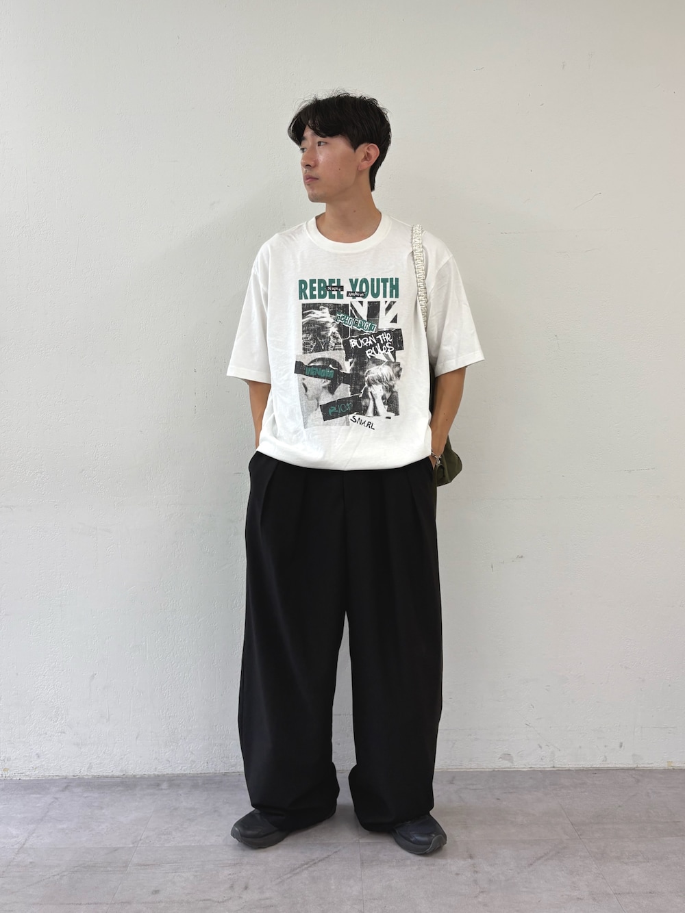 プリントTにスラックス合わせたシンプルカジュアルスタイル組みました✌️ すべてユニセックスで着用可能!