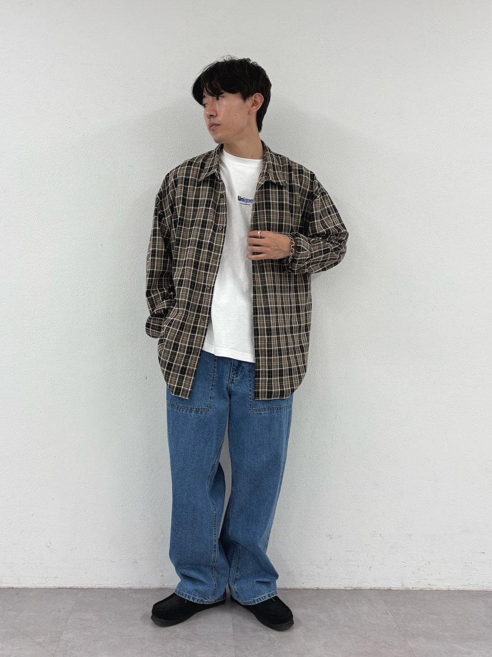 チェックシャツにベイカーデニムパンツ合わせたカジュアルスタイル組みました✌️ すべてユニセックスで着用可能!