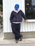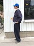 ナイロンジャケットにスウェットパンツ合わせたシティースタイル 全体的にネイビーで統一感だして キャップで差し色🧢 すべてユニセックスで着用可能です‼️