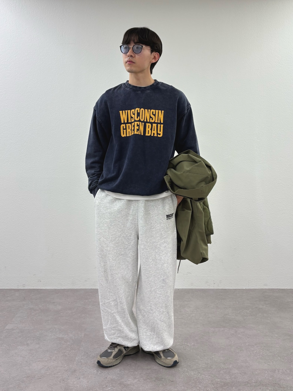 ロゴスウェットにスウェットパンツ合わせたラフコーデ組みました✌️ すべてユニセックスで着用可能です‼️