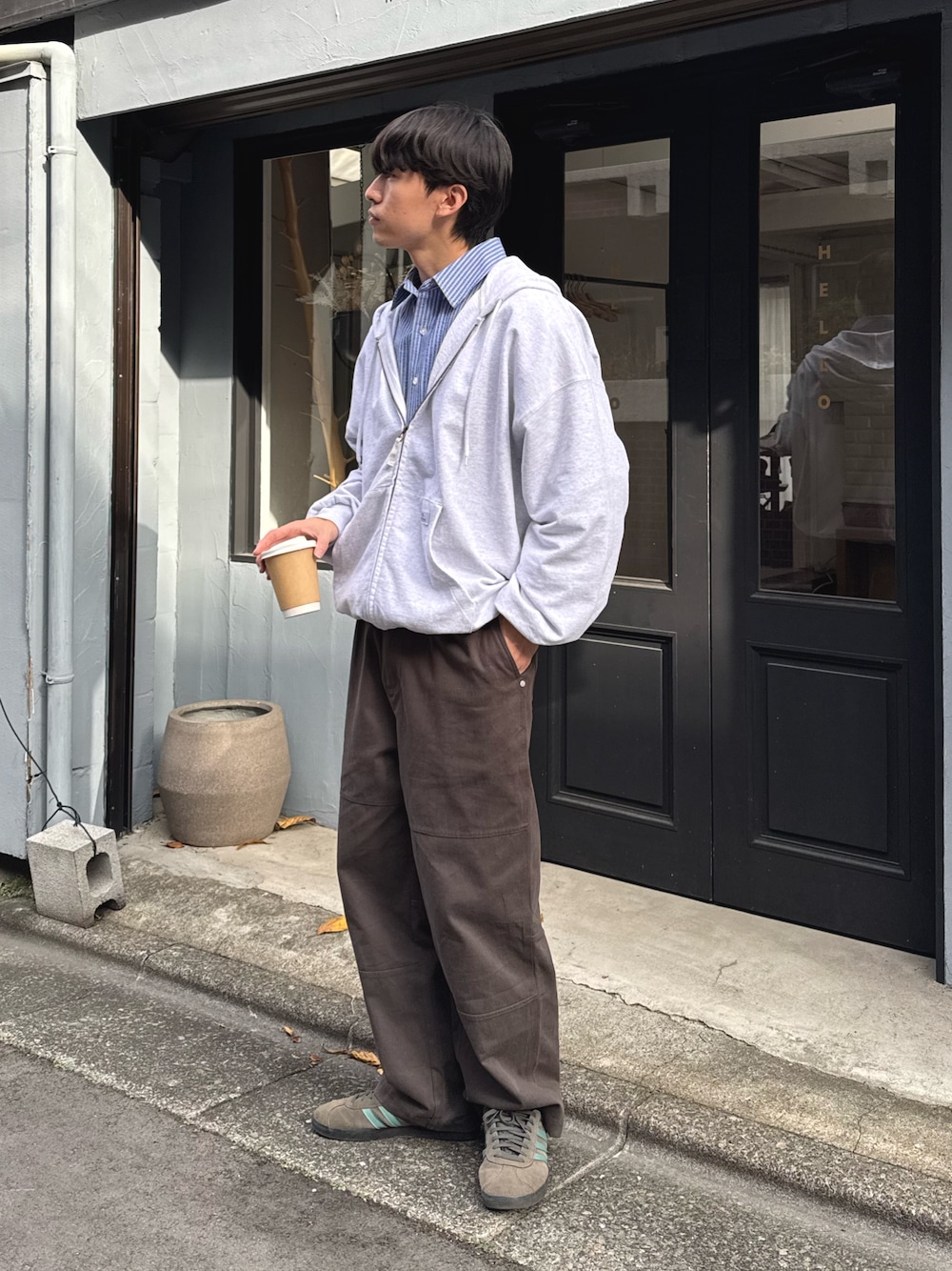 ジップパーカーにダブルニーパンツ合わせたシティースタイル組みました✌️ すべてユニセックスで着用可能です!