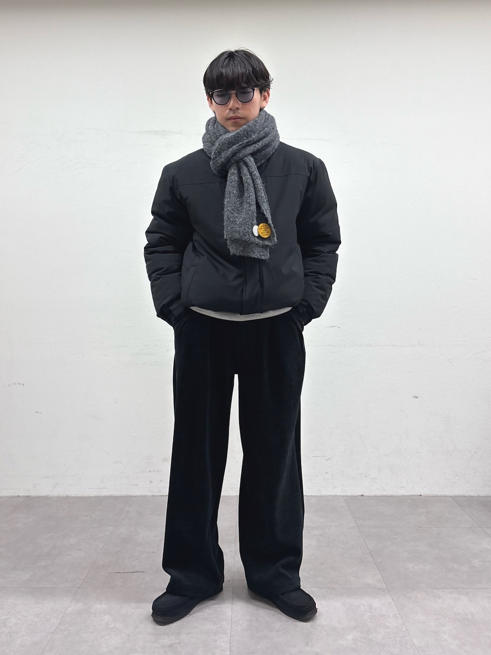 中綿ブルゾンにモールパンツ合わせたブラックコーデ組みました✌️ すべてユニセックスで着用可能です‼️