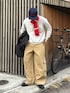 スウェットにチノパン合わせた王道カジュアルスタイル組みました✌️ マフラーで差し色も🧣 すべてユニセックスで着用可能です‼️
