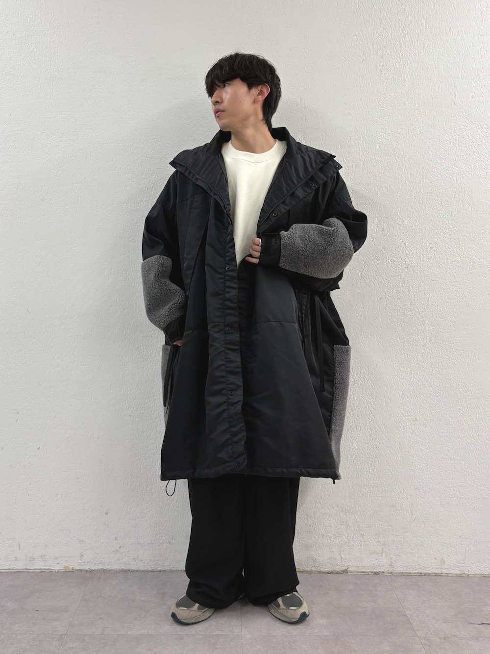 モンスターコートにスラックス合わせたモノトーンスタイル組みました✌️ すべてユニセックスで着用可能です‼️