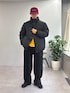 中綿ブルゾンにモールパンツ合わせたシンプルカジュアルスタイル組みました✌️ インナーとキャップでアクセントも🟡🟥 すべてユニセックスで着用可能です‼️