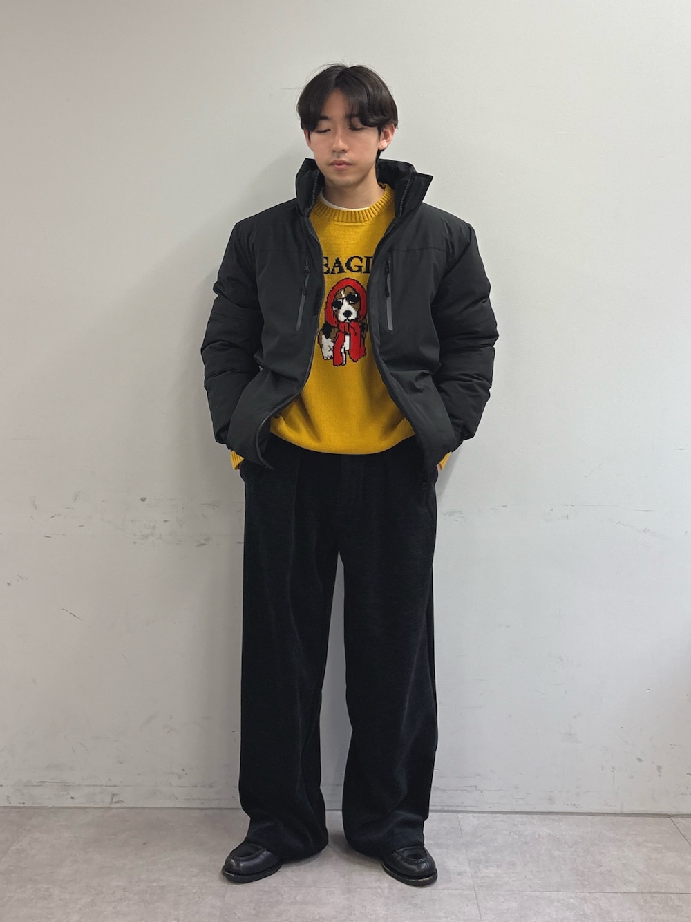 中綿パンパンのブルゾンにモールパンツ合わせたブラックコーデ組みました✌️ インナーにイエローニットでカジュアルめに すべてユニセックスで着用可能です‼️