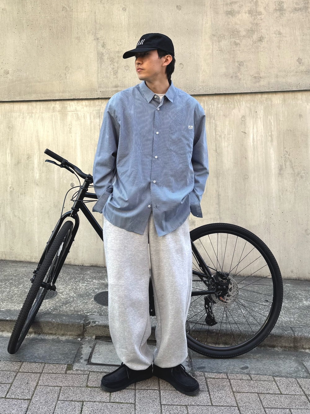 ストライプシャツにスウェパン合わせたカジュアルめなシティースタイル組みました✌️ ユニセックスで着用可能です‼️