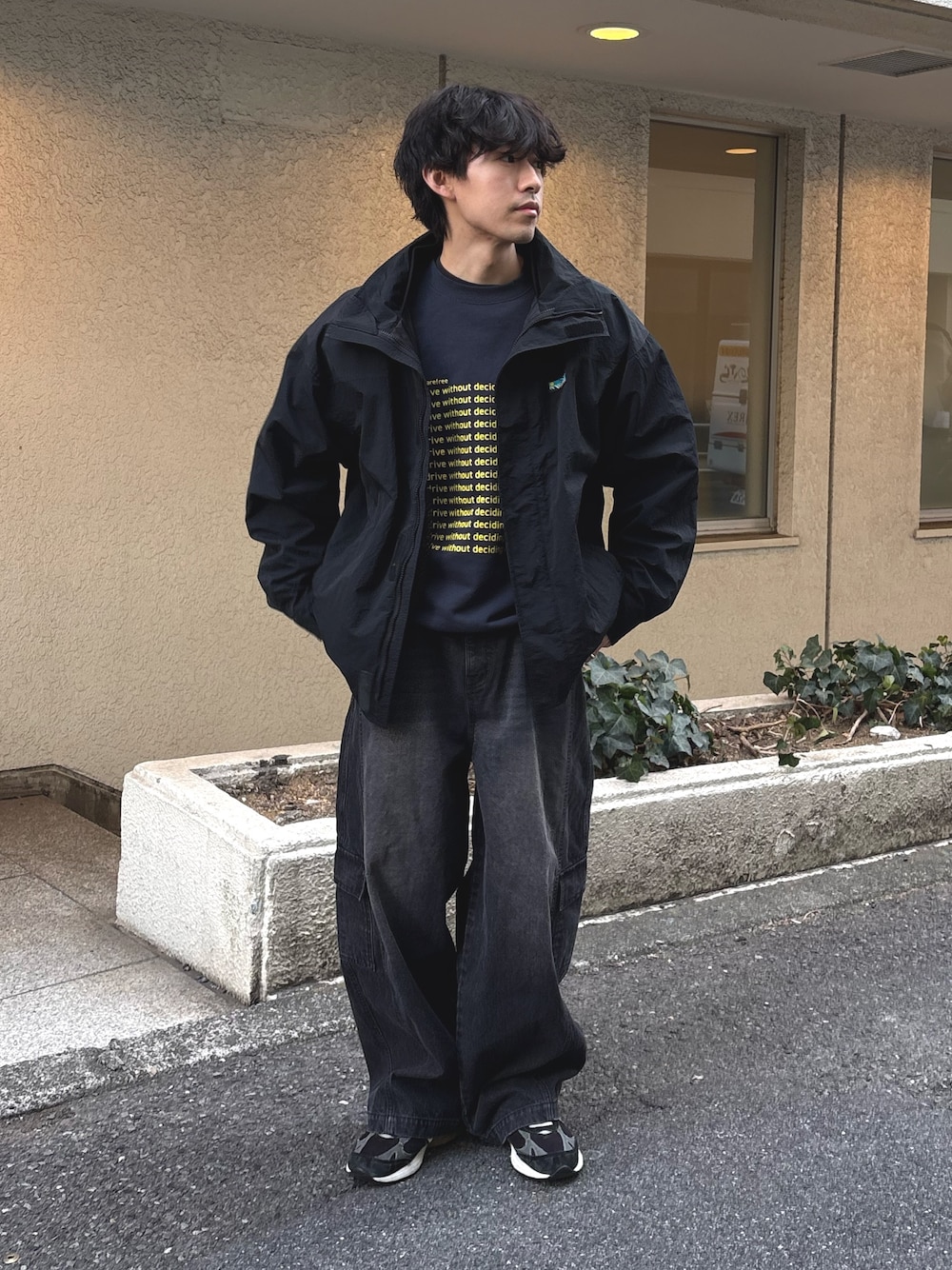 ナイロンジャケットにカーブデニム合わせたカジュアルスタイル組みました✌️ インナーにロゴスウェットでカジュアルめに すべてユニセックスで着用可能です‼️