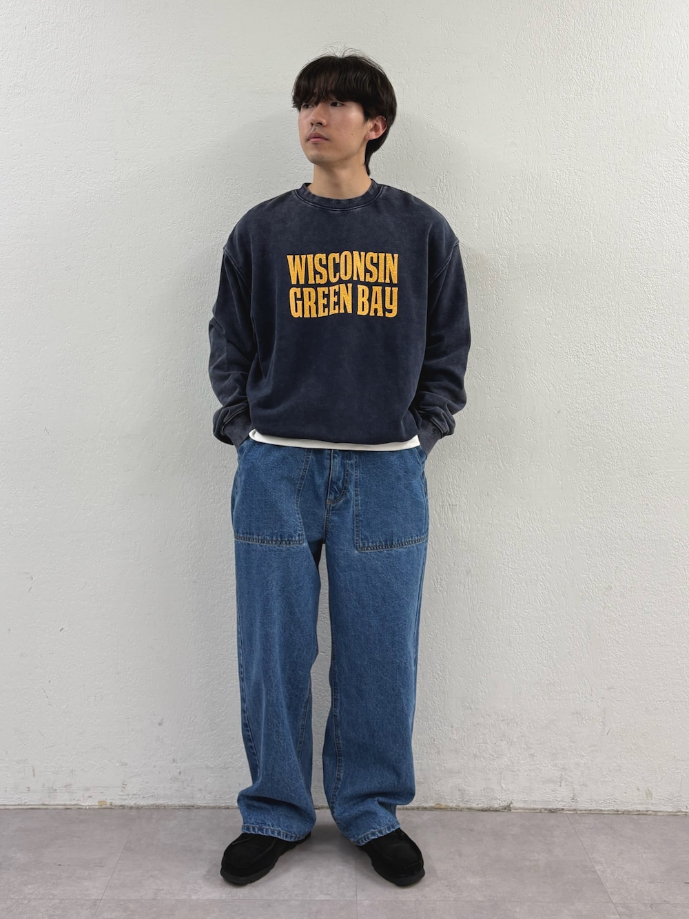 ロゴスウェットにデニムパンツ合わせたカジュアルスタイル組みました✌️ すべてユニセックスで着用可能です‼️