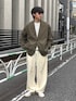 撥水性あるテーラードジャケットにトラックパンツ合わせたスポーツミックススタイル ユニセックスで着用可能!