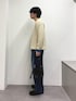 袖配色ニットにデニムパンツ合わせた王道カジュアルスタイル すべてユニセックスで着用可能!