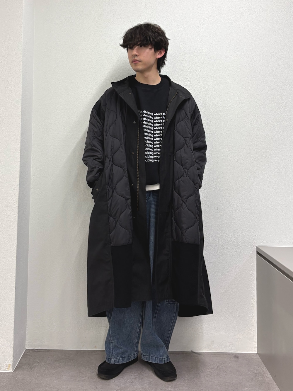 ロングコートにカーゴデニムパンツ合わせた冬のカジュアルスタイル組みました✌️ すべてユニセックスで着用可能!