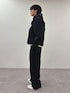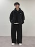 ナイロンジャケットにスラックスでブラックコーデ インナーにパーカーいれてカジュアルめに