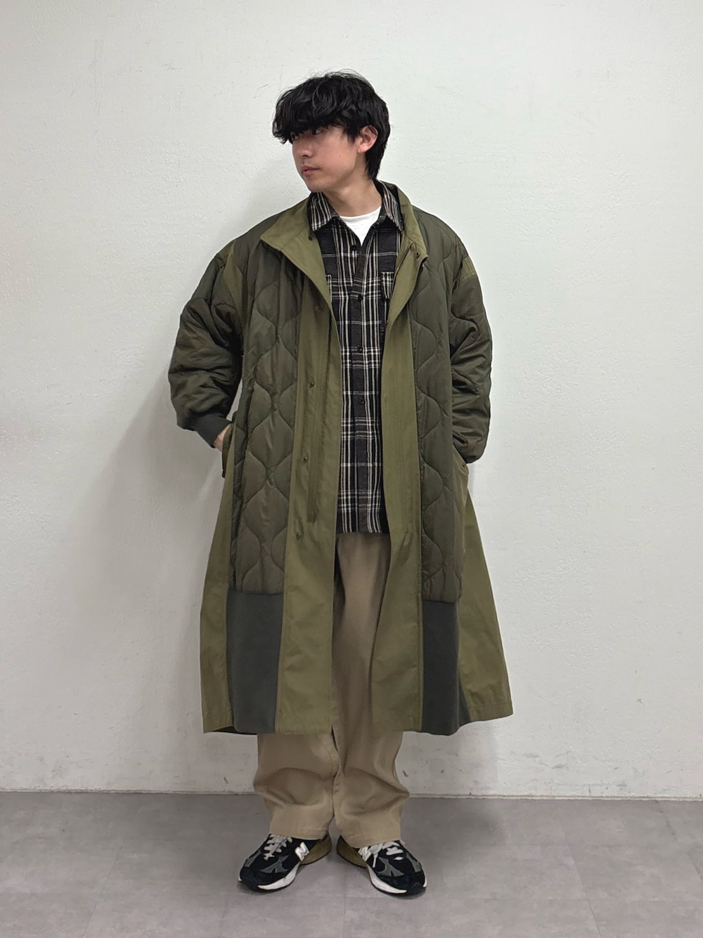 ミリタリーロングコートにチェックシャツ合わせたカジュアルスタイル組みました✌️ すべてユニセックスで着用可能です!