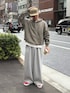 ヘンリーネックパーカーにスウェットパンツ合わせたラフコーデ組みました✌️ すべてユニセックスで着用可能です🙆♀️