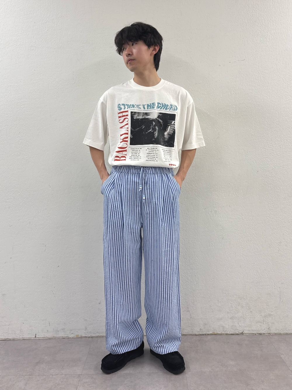 これから大活躍なプリントTにラフに履けるストライプパンツ合わせたカジュアルスタイル組みました✌️ すべてユニセックスで着用可能です‼️