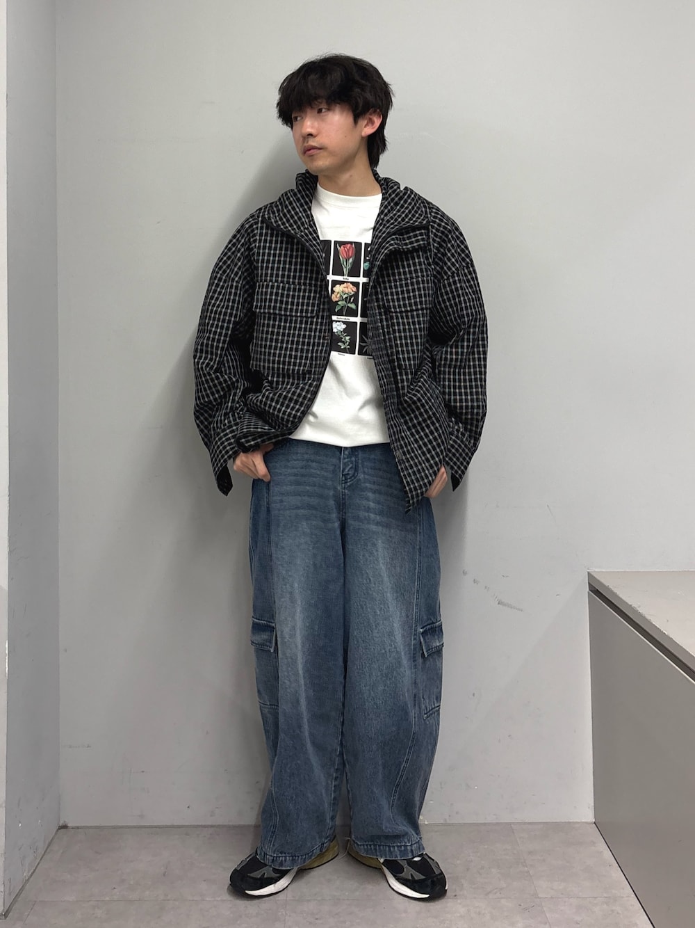 チェックジャケットにカーブデニム合わせたカジュアルスタイル組みました✌️ インナーにフラワーteeでカジュアルめに すべてユニセックスで着用可能です‼️