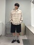 ピンクのチェックシャツにショーツ合わせた春先取りコーデ組みました✌️ すべてユニセックスで着用可能です‼️
