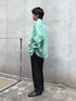 グリーンのストライプシャツにサッカーパンツ合わせたカジュアルスタイル組みました✌️ すべてユニセックスで着用可能です‼️