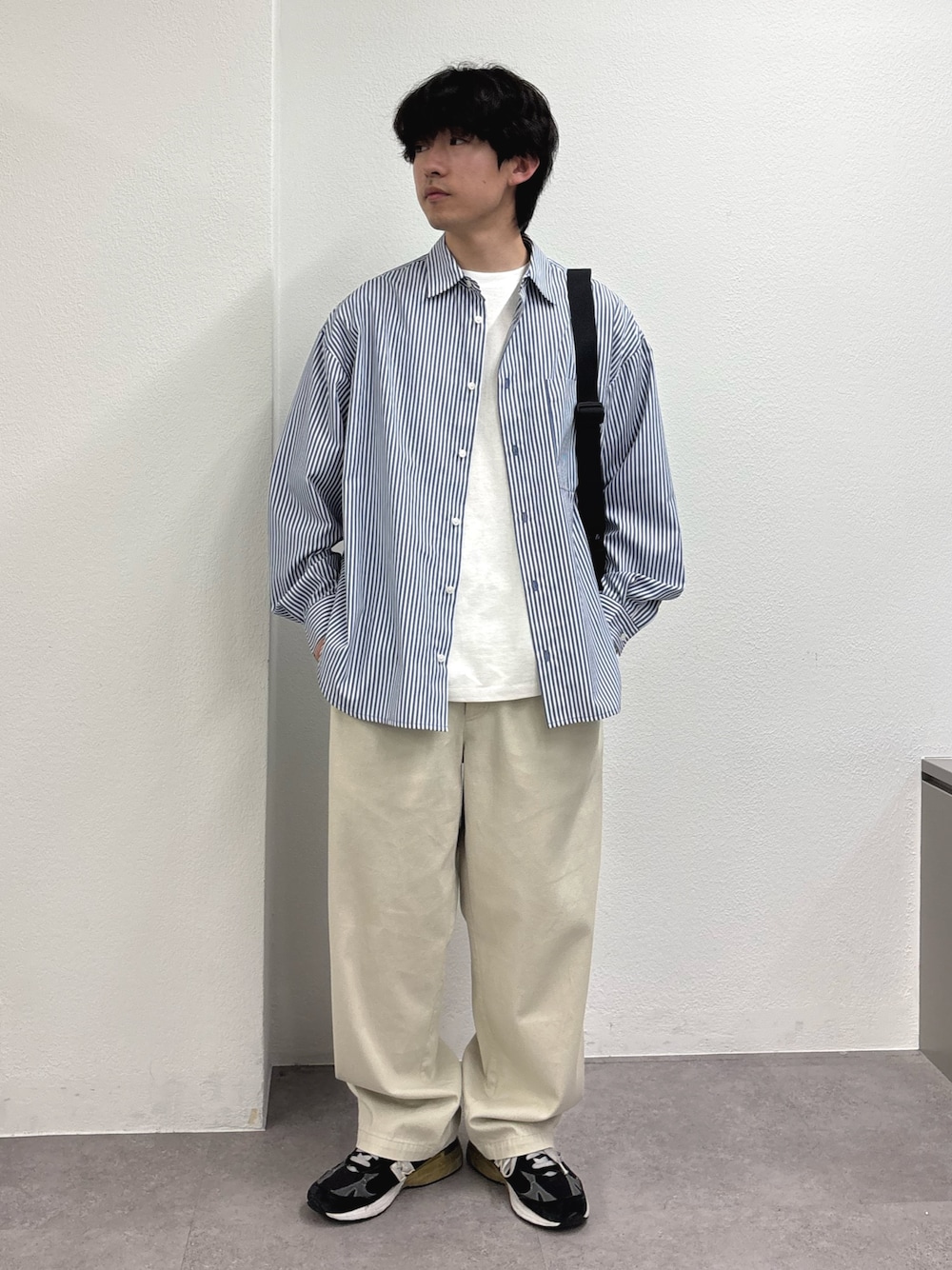 ストライプシャツにホワイトパンツ合わせた春の爽やかコーデ組みました✌️ すべてユニセックスで着用可能です‼️