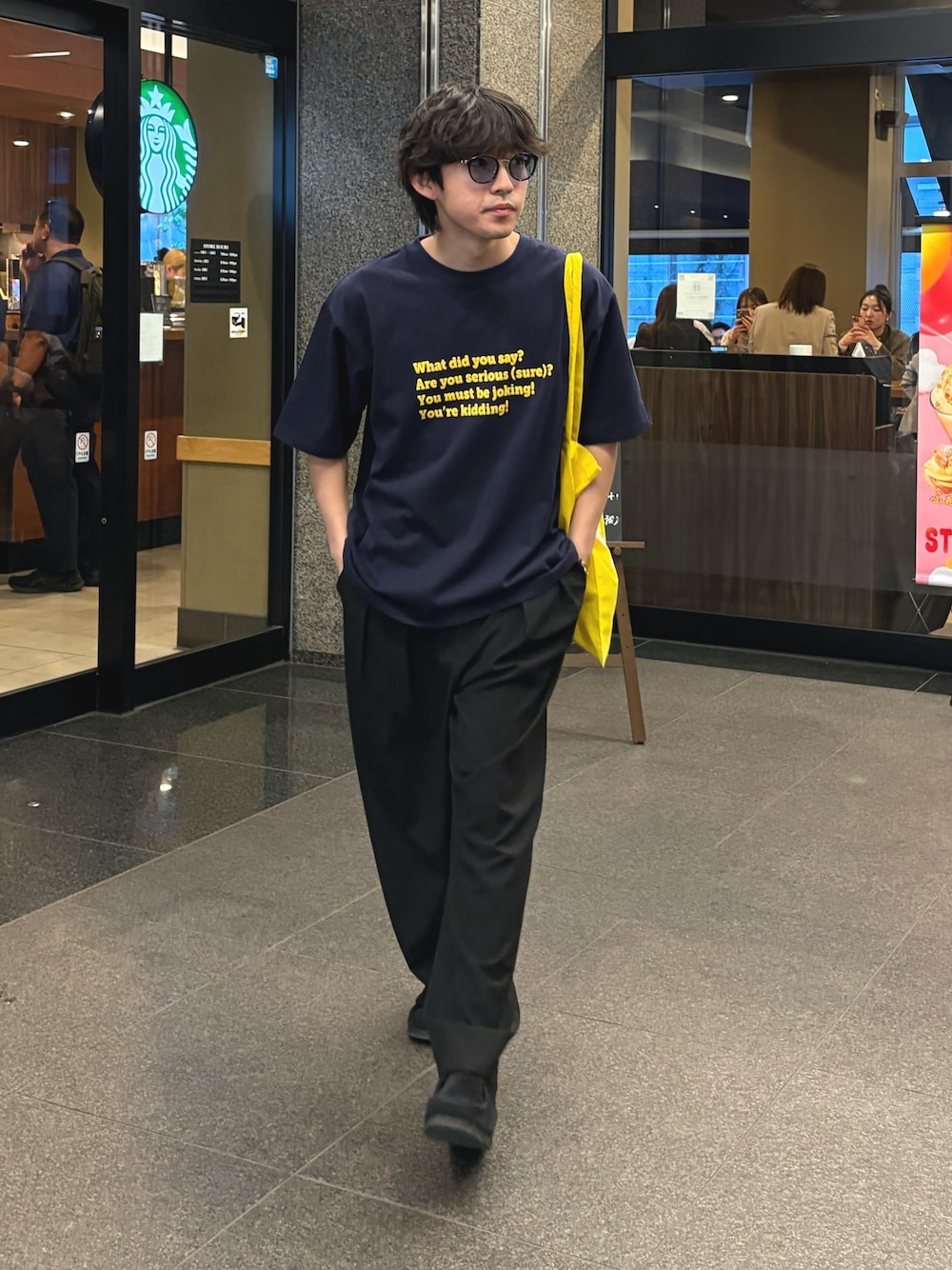 ポコポコTシャツにスラックス合わせたモノトーンスタイル組みました✌️ すべてユニセックスで着用可能です!