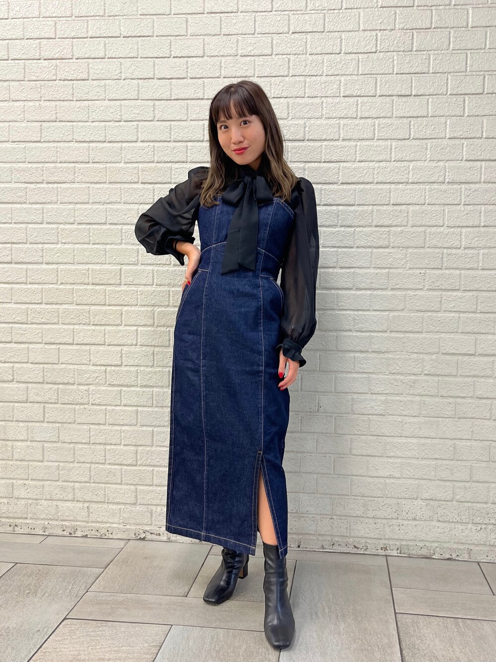 毎年大人気のデニムジャンスカから今年はIラインが出ます☺️❤️ サイドスリットが今年らしくカジュアルにも、フェミニンにも着て頂けます! バックリボンになっており調節可能です🌼