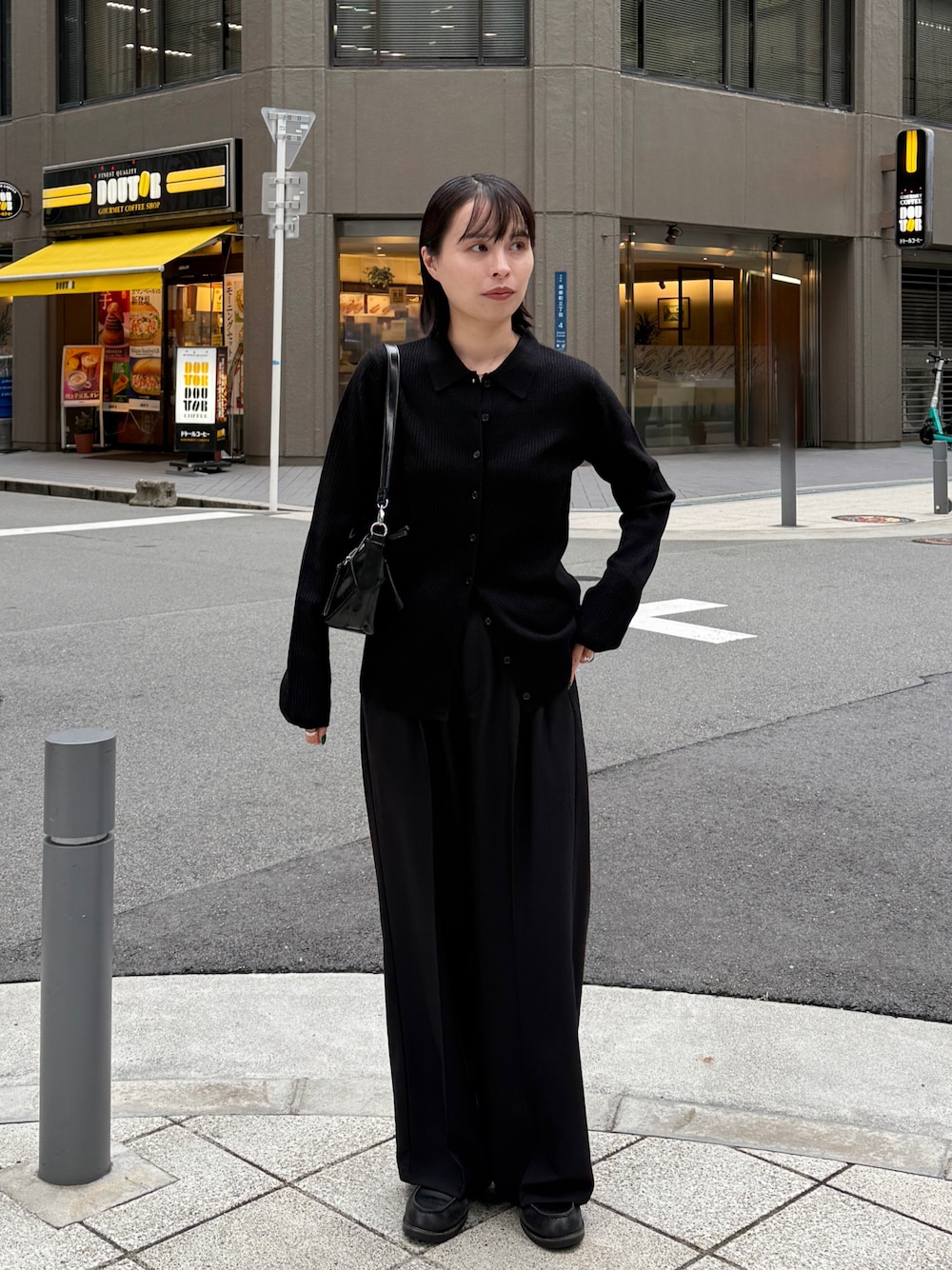 yuiのニット/セーター「モチモチリブ衿付前ボタンプルオーバー《WEB限定カラーあり》」を使ったコーディネート