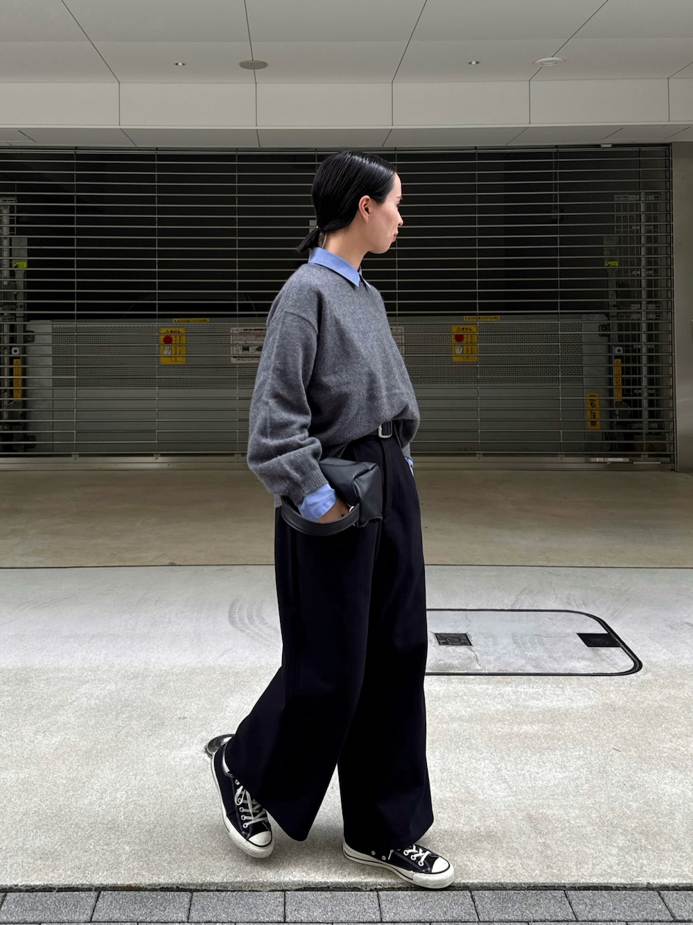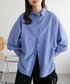 大人気のブルーシャツを着心地いいニットに合わせてみました。 ニットに程よくゆとりがあるので、シャツを合わせても余裕で着れます◎