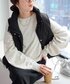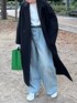 かっちり見えしそうなコートの中はスウェットとデニムパンツでカジュアルに◎ コートは余裕あるシルエットなので、厚手のインナーでもするっと通ります。
