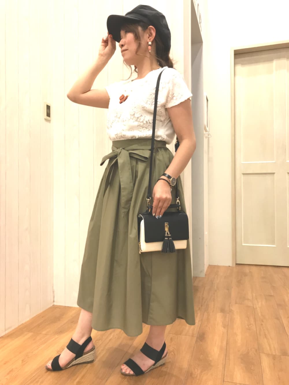 こんにちは(*ˊ˘ˋ*) いつもご覧いただきありがとうございます♡ またいいね♡もフォローも嬉しいです(≧∇≦*) 今日も暑いですね😵 梅雨なのに雨は降るのでしょうか… 今回は大人カジュアルコーデにしてみました😊 アースカラーのカーキ×ホワイトで 大人感をプラスするために(笑) 小物を黒でまとめてみました😊 レースや、スカートで可愛さをだしたので、 デートにもオススメです٩(ˊᗜˋ*)و いつもの帽子スタイルですが、 今回はキャスケットにしてみました✌️ またぜひ いいね♡やフォローもお願いします(*´˘`*)♡ 最後までご覧いただきありがとうございました🎶
