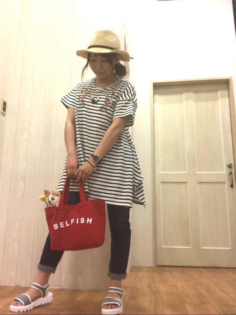 こんにちは(*ˊ˘ˋ*) ご覧いただきありがとうございます😊 いいね♡やフォローもめっちゃ嬉しいです😆✌️ 昨日は雨が凄かったですね😖 仕事終わって帰るとき、車のワイパーMAXでも 見えないし、稲光が光ってて怖かったです😣 今回は夏休みのお出かけママコーデにしました🎶 やっぱりボーダーです(笑) チュニックはCUTE BLONDEの新作で、 刺繍も可愛いですッ٩(ˊᗜˋ*)و しかも、¥2149(税込)とプチプラ👀✨ デニムもストレッチもめっちゃあるし、 ウエストも安心のゴムで楽チンです👍 ボーダー×レッドでちょいマリンに…(*ˊ˘ˋ*) バックにはやっぱりフレデリックです😍 可愛いですよね💕 足元はスポーツサンダルなので、走り回っても安心です👍✨ 掲載が無いものはまた更新しますね😊 気になる方はお近くのシューラルーへ ε=ε=(っ≧ω≦)っ またよかったら、いいね♡やフォローも お待ちしてます(∩˃o˂∩)♡ 最後までご覧いただきありがとうございました🤗