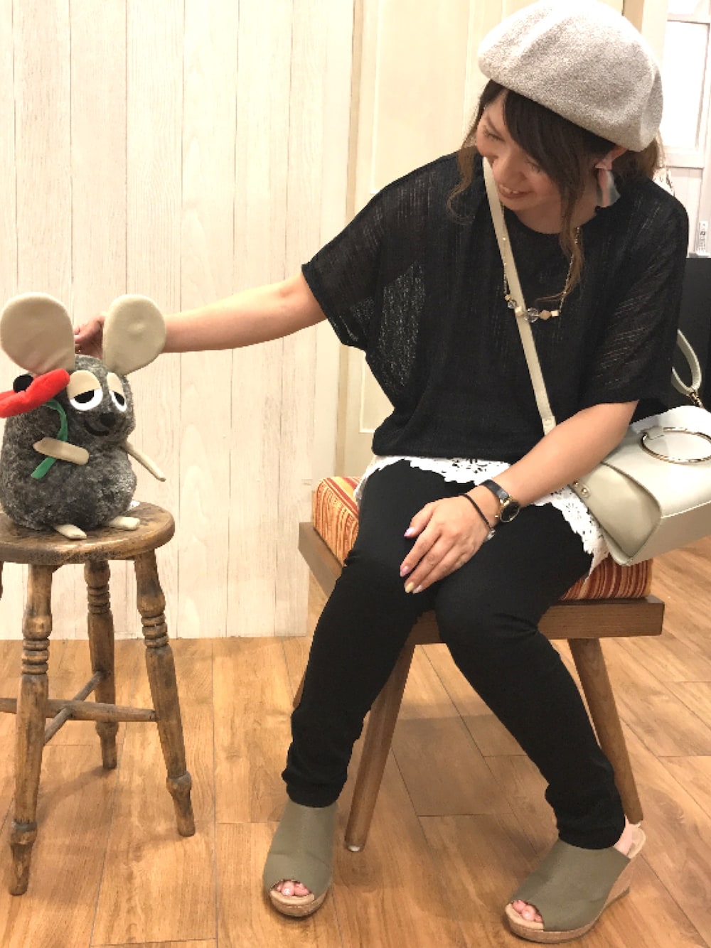 こんにちは(*ˊ˘ˋ*) ご覧いただきありがとうございます😊 いいね♡やフォローもめっちゃ嬉しいです😆✌️ 今回はいつもと違う感じにしてみました😊 フレデリック🐭と対談編です😆🎶 フレデリックを見つけて、 「いつも見てます…👀✨ 写真とモフモフさせてください😆💕」 ってたぶん、言ってます(笑) コーデはあまりした事がないブラックコーデにしてみました! オールブラックになりきれてない感がでてますね😅 ってことでモノトーンってことに(笑) トップスは秋物ですが、薄く、透け感があるのと、裾がレースのタンクがセットになってます! ベージュ、ボルドー、グレーの4カラーです♪ パンツはめちゃくちゃストレッチがきいてて、履いてないような感じです! トップス¥3229(税込)✨ パンツ¥4309(税込)✨ またよかったらいいね♡やフォローも気軽にポチッとお願いします(∩˃o˂∩)♡ 最後までご覧いただきありがとうございました💕