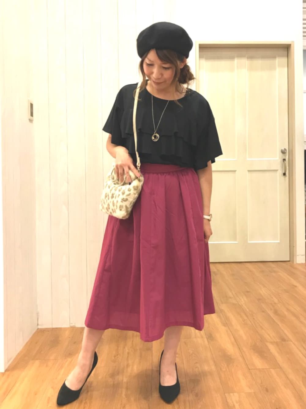 こんにちは(*ˊ˘ˋ*) ご覧いただきありがとうございます😊 いいね♡やフォローもめっちゃ嬉しいです😆✌️ 今回は狂わせピンクに丁度いいカラーの スカートが入荷したので キレイめでコーデしてみました😊 ピンク×ブラックにフェイクファーのバックをアクセントにしました😆✨ トップスはフリルがあり、可愛く💕 Tシャツなので着心地も楽チンです🎶 スカートは後ろが長くなってて、 横からのシルエットもキレイです👀✨ ウエストマーク出来るリボンや 防シワ加工もあり、優秀アイテムです👍✨ またよかったらいいね♡やフォローもぜひポチッと押して頂けると嬉しいです(∩˃o˂∩)♡ 最後までご覧いただきありがとうございました😊