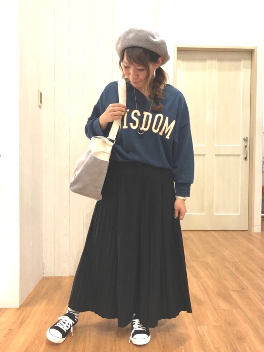こんにちは(*ˊ˘ˋ*) ご覧いただきありがとうございます😊 いいね♡やフォローもめっちゃ嬉しいです😆✌️ 今回は学生カジュアルコーデ🎶にしてみました😊 イメージは大学生かな…👀 トップスは首元のVネックが可愛く💕 カラーもグリーンが秋らしくていい感じのスエットです😊👍✨ プリーツのスカンツはスカートにも見えて、さらっと涼しげに着れます👍✨ バックは少し大きめで、トートでもショルダーにもでき、荷物の多いママさんも使いやすいですよ👍✨ またよかったらいいね♡やフォローも気軽にポチッと押して頂けると嬉しいです(∩˃o˂∩)♡ 最後までご覧いただきありがとうございました😆