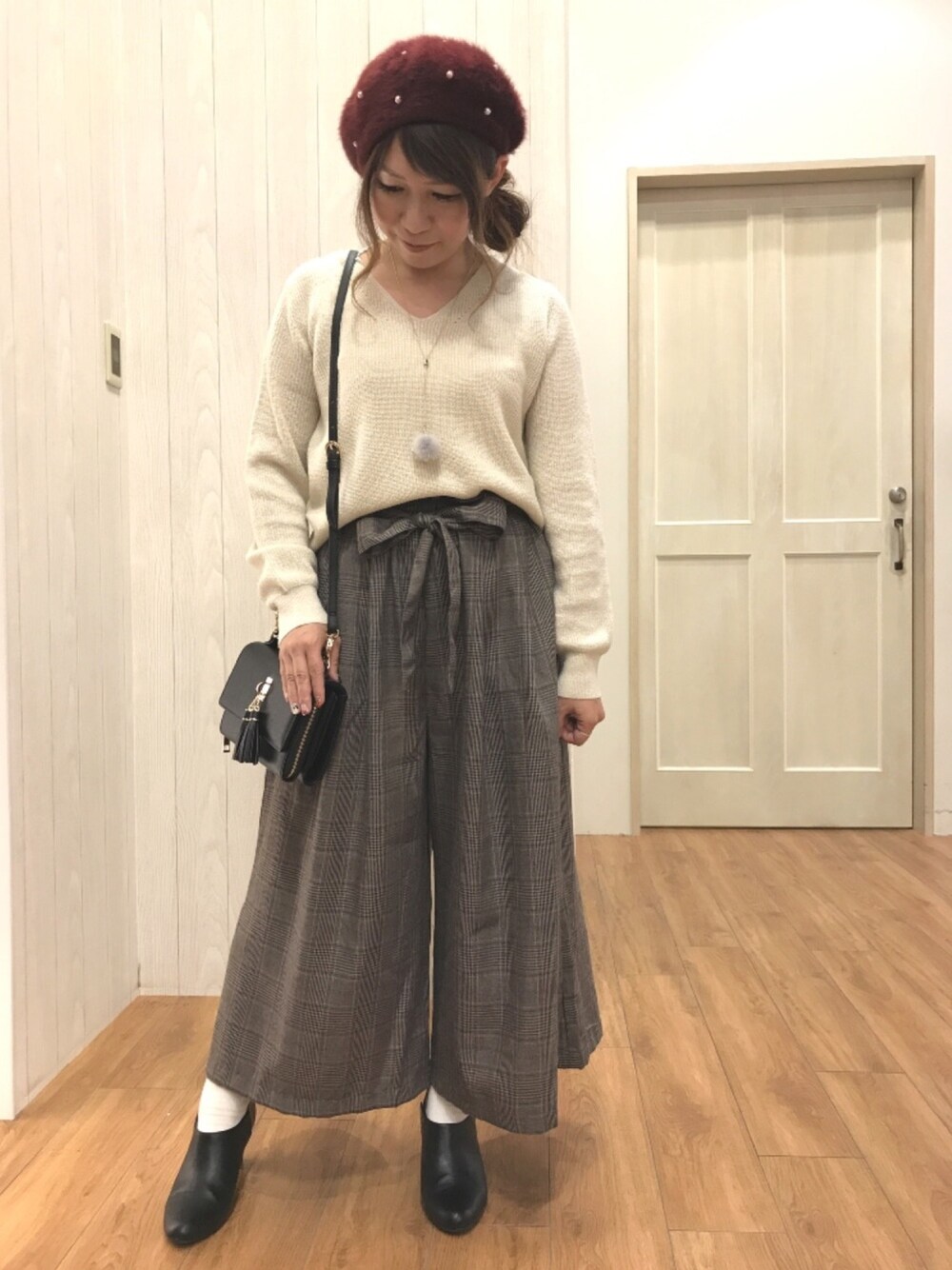 こんにちは(*ˊ˘ˋ*) ご覧いただきありがとうございます😊 いいね♡お気に入り、フォローもめっちゃ嬉しいです❣️ 覗いて下さる方も(๑ˊ͈ ꇴ ˋ͈)ᵃʳⁱᵍᵃᵗᵒ〜♡॰ॱ 昨日のコーデ、少しの時間ランクインしてました😆🙌 感謝(ㅅ´ ˘ `)感謝(ㅅ´ ˘ `) 今回はグレンチェックのパンツが入荷してきたので、 さっそく来てみました😆❣️ トップスはあぜ編みのニットでラメが入ってます😆 スカンツは茶系のグレンチェックにしました😊 横にスリットが少し入ってます✌️ ベレー帽のボルドーの差し色と小物をブラックでしめました😆✌️ ブーティーは去年も大活躍してたので、 今年も買っちゃいました😆❣️ お仕事中に履いてても足があまり痛くならず、 お気に入りです💗 まだ掲載ないものは更新しますね❣️ よかったらいいね♡お気に入り、フォローもポチッと押して頂けると嬉しいです(◍•ᴗ•◍)♡♬ 最後までご覧いただきありがとうございました😆✌️
